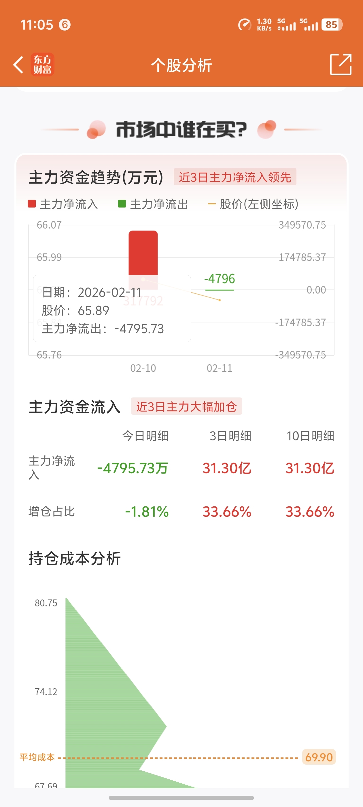 分析显示,主力买了31亿,平均成本在70,这你都认为会跌?介入,目标位118