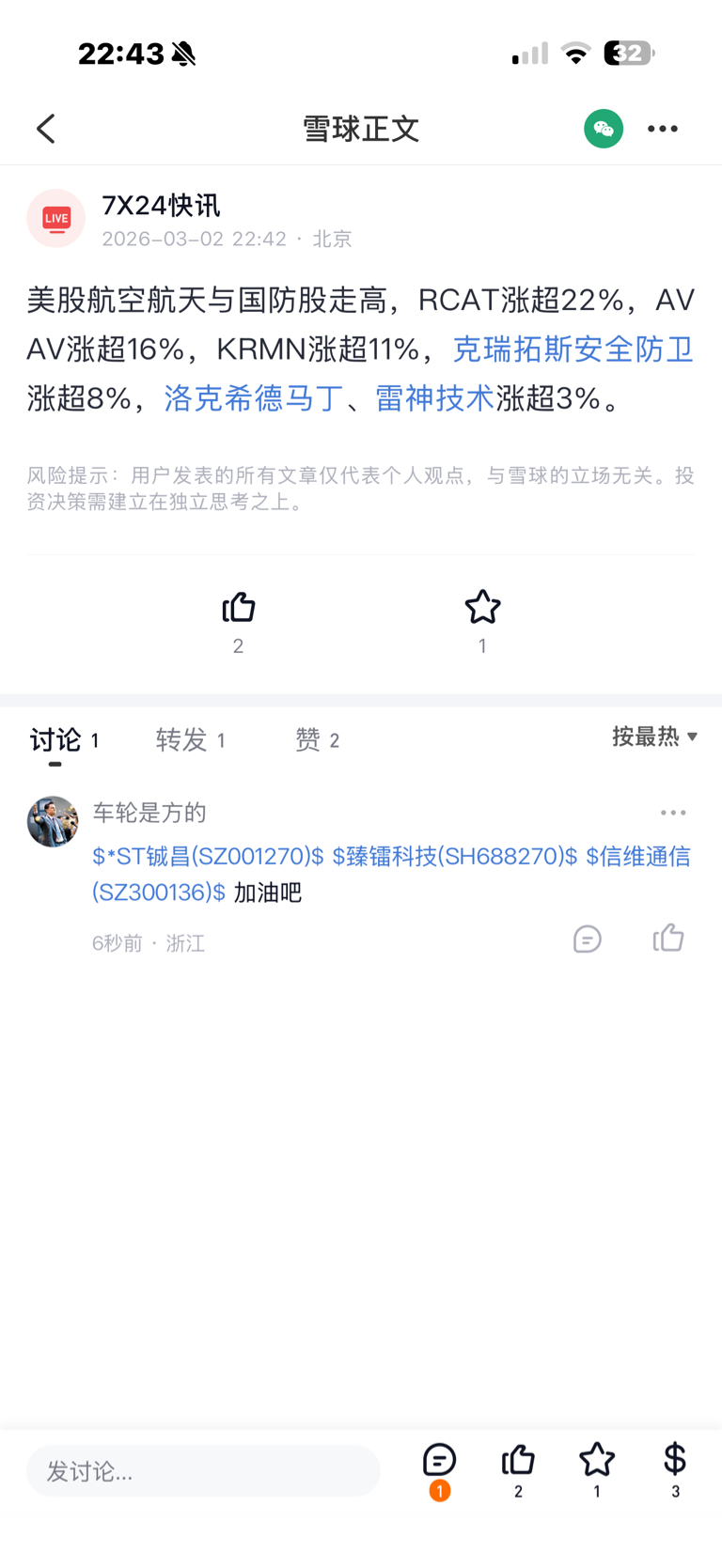 $电科蓝天(SH688818)$ 军工+航天,整体趋势不会变
