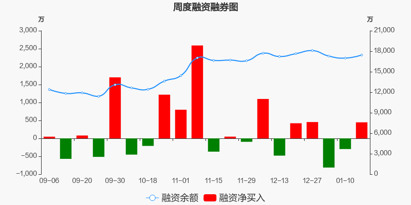 天能股份本周(2025/01/13-2025/01/17)累计涨幅达3.57%,截至1月17日最新股价报收26.39元。从增量上来看,1月13日至1月17日融资买入交易规模3169.39万元,融资偿还规模2721.96万元,期内融资净买入447.43万元。从存量上来看,截止1月19日,天能股份融资融券余额1.75亿元,其中融资余额规模1.74亿元,融券余额规模98.94万元。