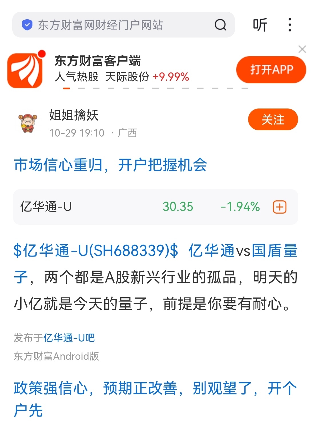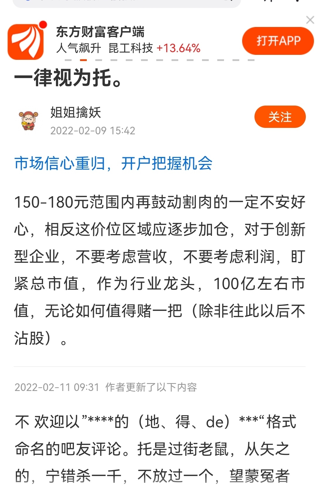 温馨提示: 1.根据《证券法》规定,禁止编造、传播虚假信息或者误导性信息,扰乱证券市场;2.用户在本社区发表的所有资料、言论等仅代表个人观点,与本网站立场无关,不对您构成任何投资建议。用户应基于自己的独立判断,自行决定证券投资并承担相应风险。《东方财富社区管理规定》