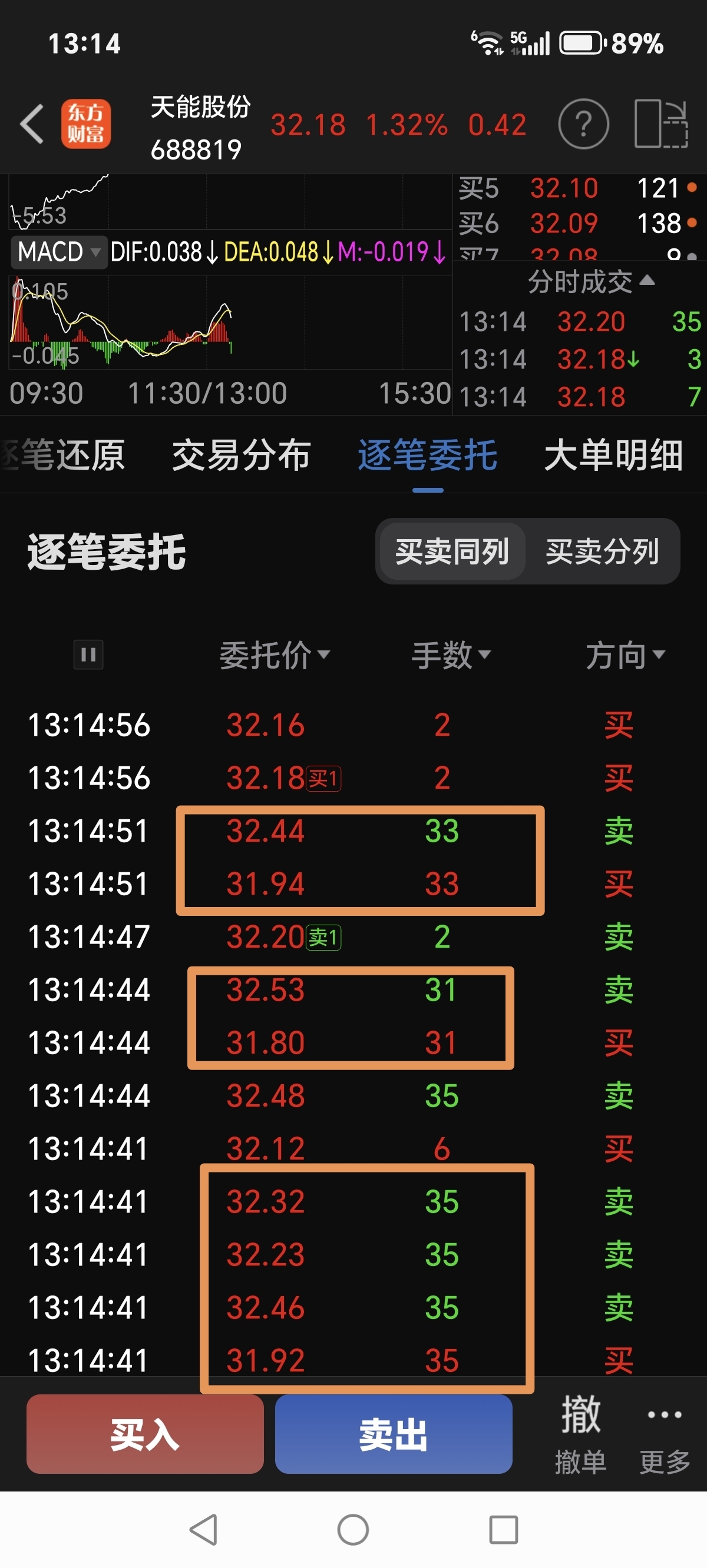 $天能股份(SH688819)$ 量化对敲盘每分每秒在折腾