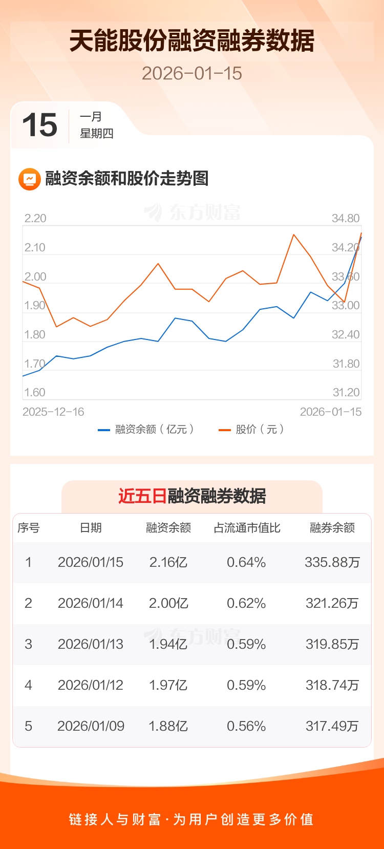 交易所最新数据显示,天能股份于2026年1月15日获融资买入3980.13万元,融资偿还2335.15万元,当日融资净买入1644.97万元。目前,该股融资余额2.16亿,占流通市值比例为0.64%。