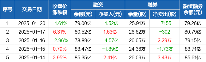 中芯国际:融资净偿还1.52亿元,两市排名第七(01-20)