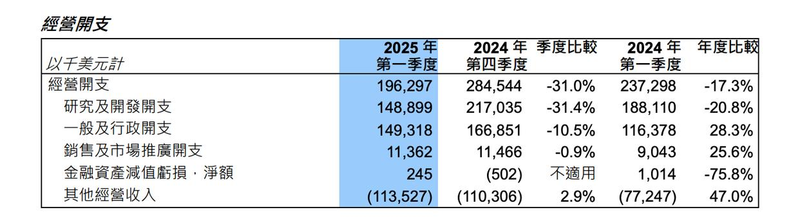蓝鲸科技记者注意到,中芯国际净利润增长或与研发相关支出减少、一般及行政开支降低有关。今年一季度,公司研究及开发支出从2024年第四季度的2.17亿美元降至1.49亿美元;一般及行政开支也从1.67亿美元减少至1.49亿美元。