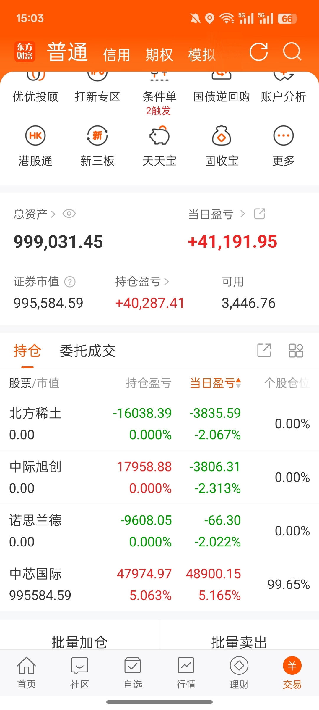 100W开启炒股第14天清仓中际旭创、北方稀土、诺思兰德加仓中芯国际