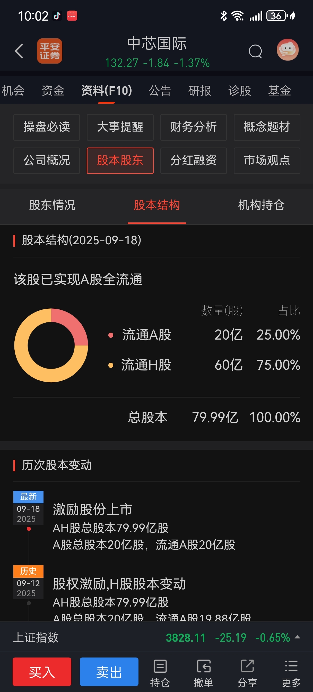 中芯国际总市值=A股发行总股数×股票最新价格+港股发行总股数×股票最新价格