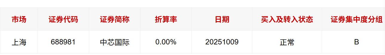 今日下午,《每日经济新闻》记者查询中信证券、国泰海通、华泰证券等多家券商官网发现,这些券商系统中的中芯国际A股两融折算率均为零。根据今日国泰海通发布的《可充抵保证金证券名单及折算率调整公告》,在今日的调整之前,中芯国际A股在国泰海通的折算率为70%。