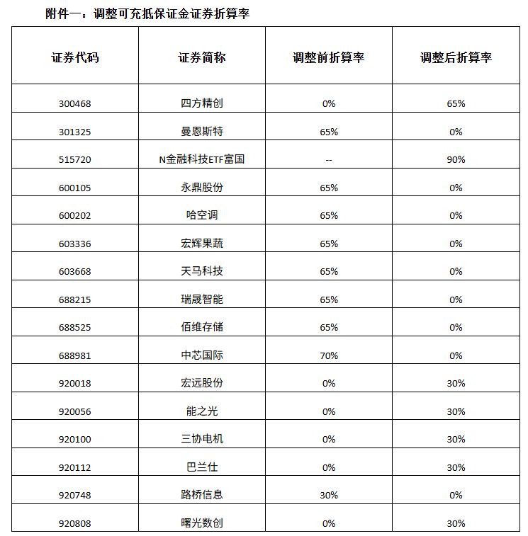 事实上,从国泰海通官网披露的信息来看,除了中芯国际A股外,曼恩斯特、永鼎股份、哈空调、宏辉果蔬、天马科技、瑞晟智能、佰维存储等多只个股的两融折算率都在今日被调降为零。某头部券商分公司相关负责人向记者表示,“我们通常不会对此类信息发短信,但会在官网进行公示。”