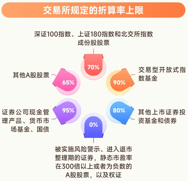 其中,交易所规定的折算率上限共分95%、90%、80%、70%、65%、0%六类。