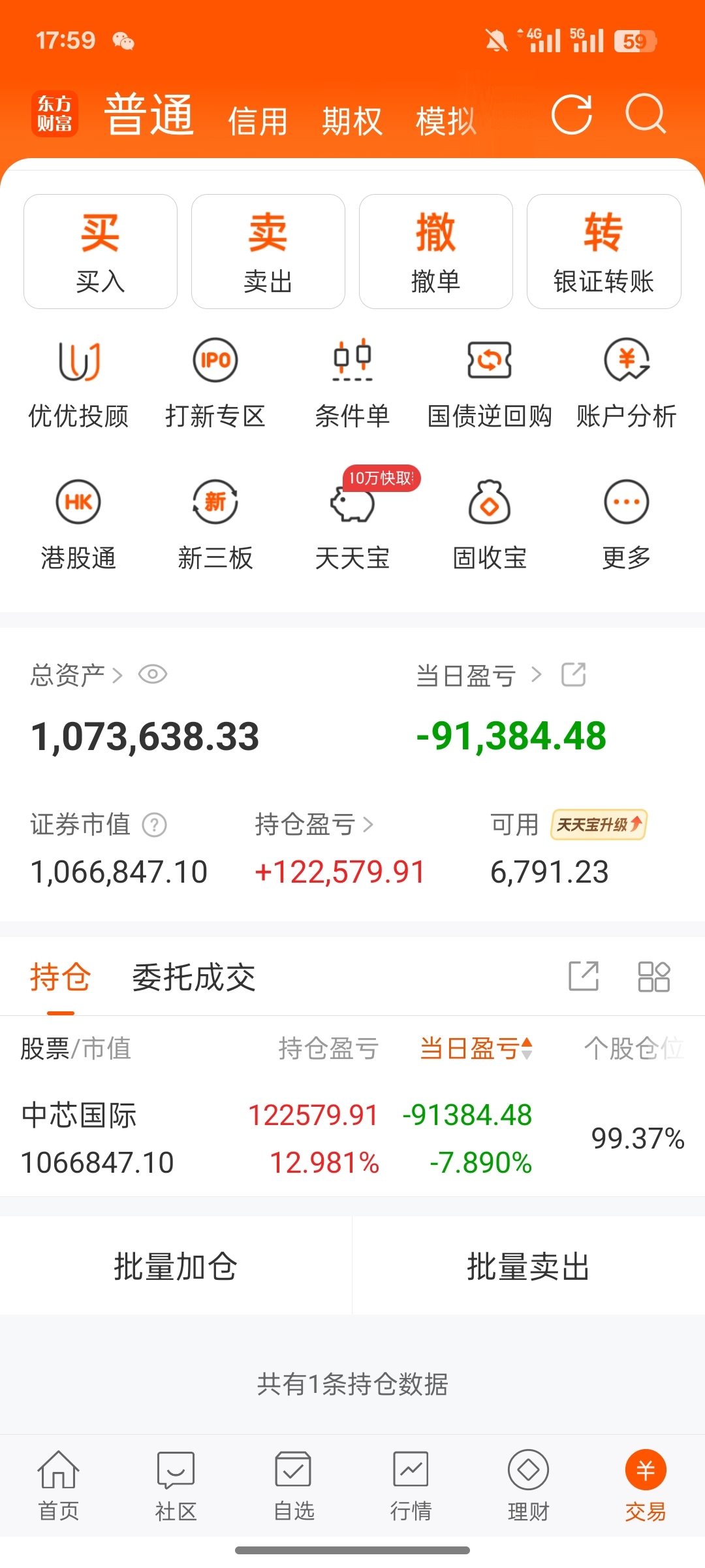 100W开启炒股第25天持有中芯国际不动(今天吃大面了)