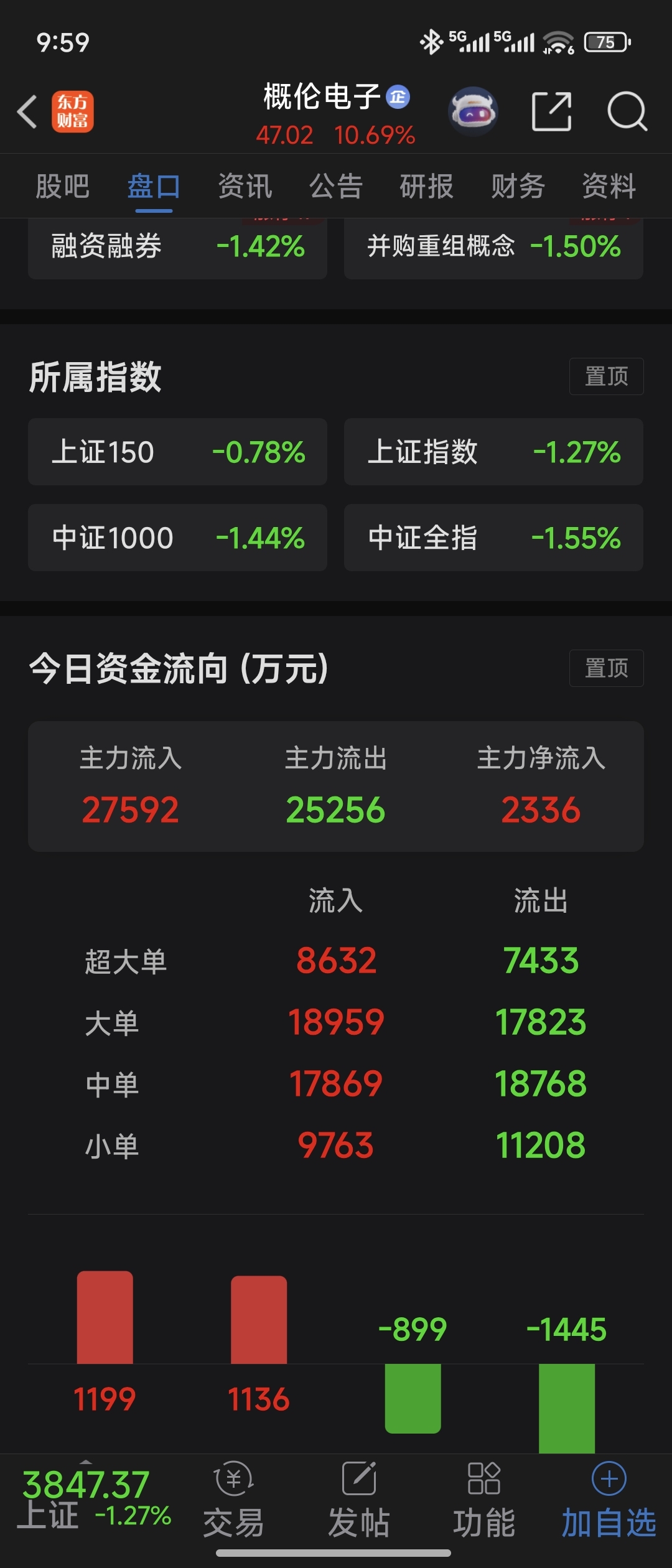 同是科创板,中芯概念股。概伦电子买入资金才二千三万,你买入资金一亿多股票才涨一点