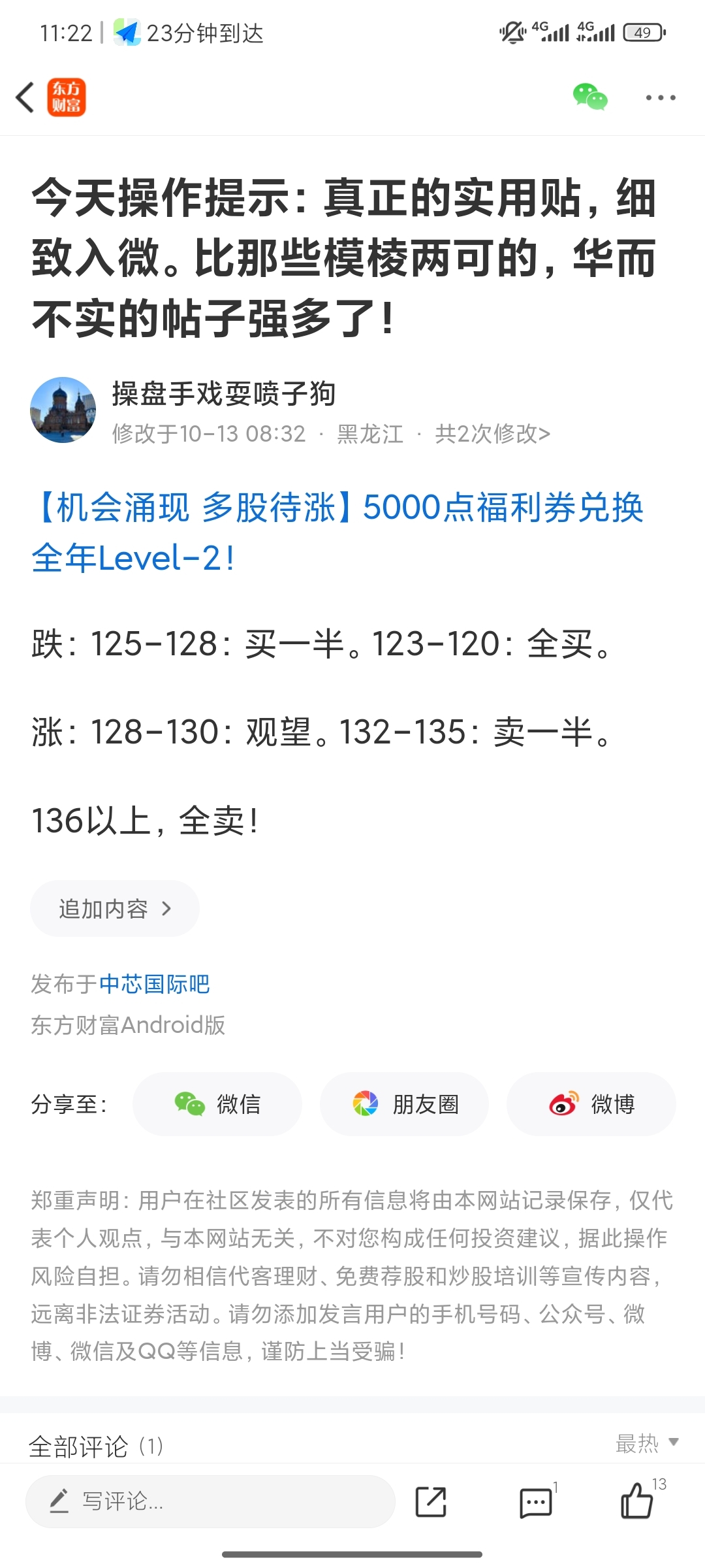 温馨提示: 1.根据《证券法》规定,禁止编造、传播虚假信息或者误导性信息,扰乱证券市场;2.用户在本社区发表的所有资料、言论等仅代表个人观点,与本网站立场无关,不对您构成任何投资建议。用户应基于自己的独立判断,自行决定证券投资并承担相应风险。《东方财富社区管理规定》