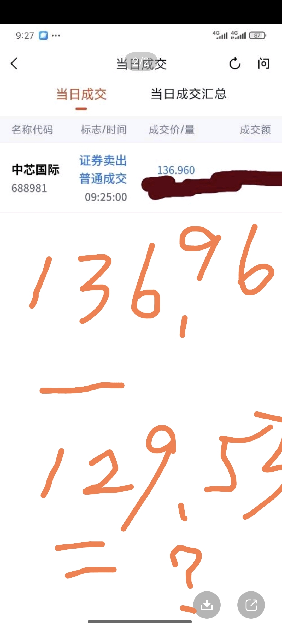 早上集合竞价136.96高抛,现在又全部买进,七块的差价,加上前几天两次的差价,套牢。明天若是再跌,又要银行搬钱了。