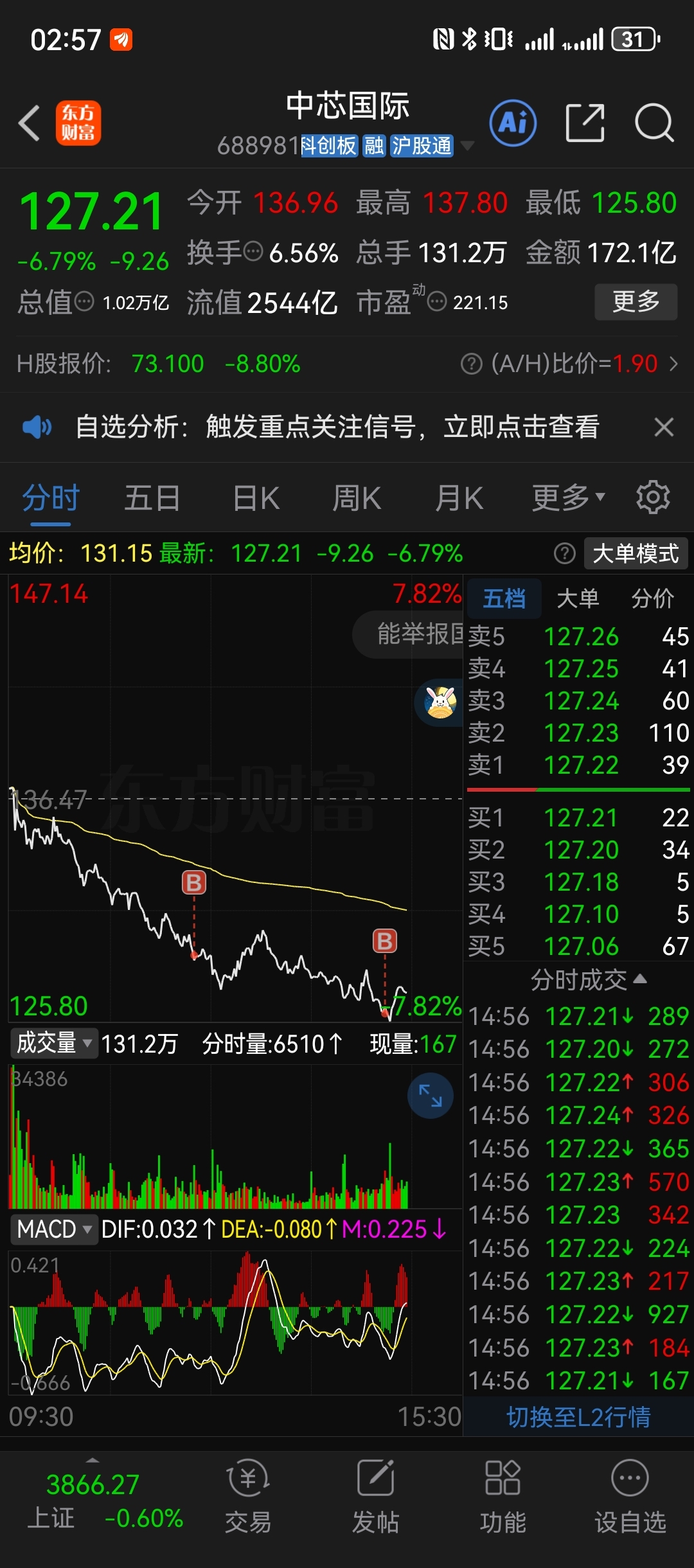 $中芯国际(SH688981)$ 今天尽力,明天看各位了