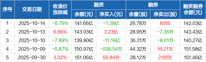 中芯国际:融资净偿还1.38亿元,融资余额141.66亿元(10-14)
