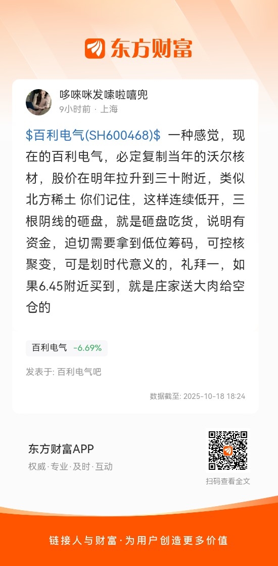 温馨提示: 1.根据《证券法》规定,禁止编造、传播虚假信息或者误导性信息,扰乱证券市场;2.用户在本社区发表的所有资料、言论等仅代表个人观点,与本网站立场无关,不对您构成任何投资建议。用户应基于自己的独立判断,自行决定证券投资并承担相应风险。《东方财富社区管理规定》