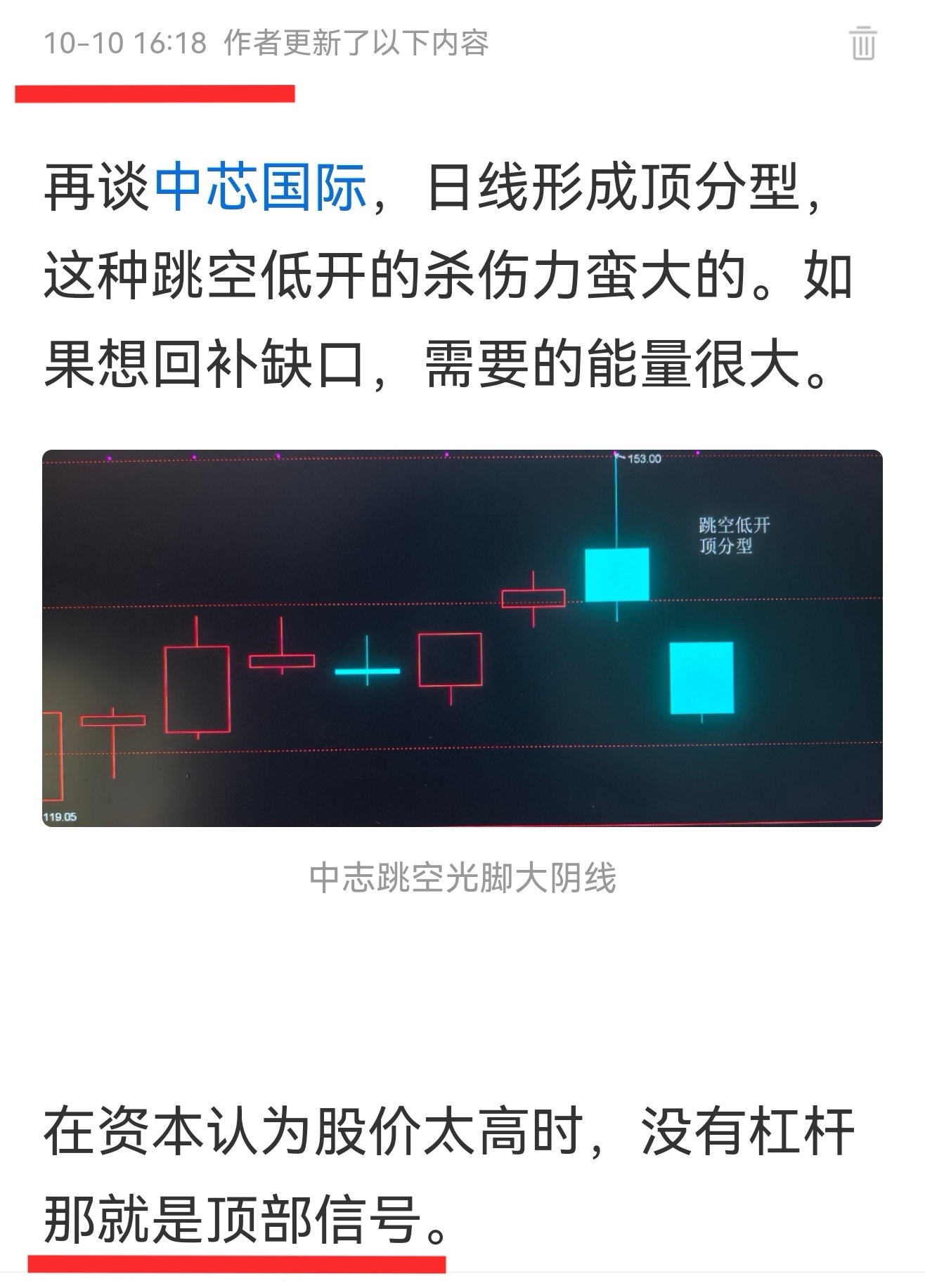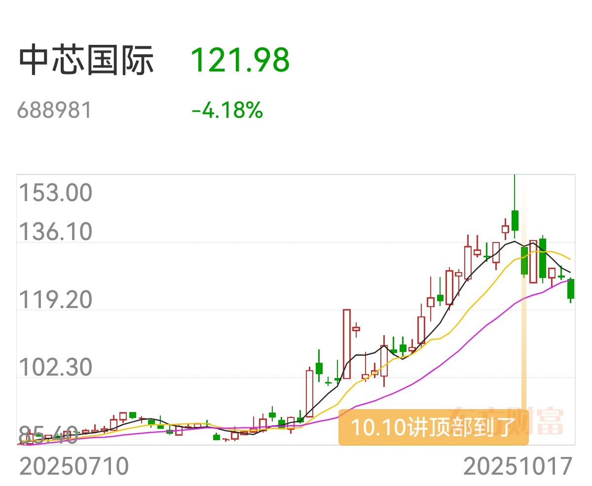 二、10.17中芯国际再跌4.18%,同时确认了日线顶部成立。