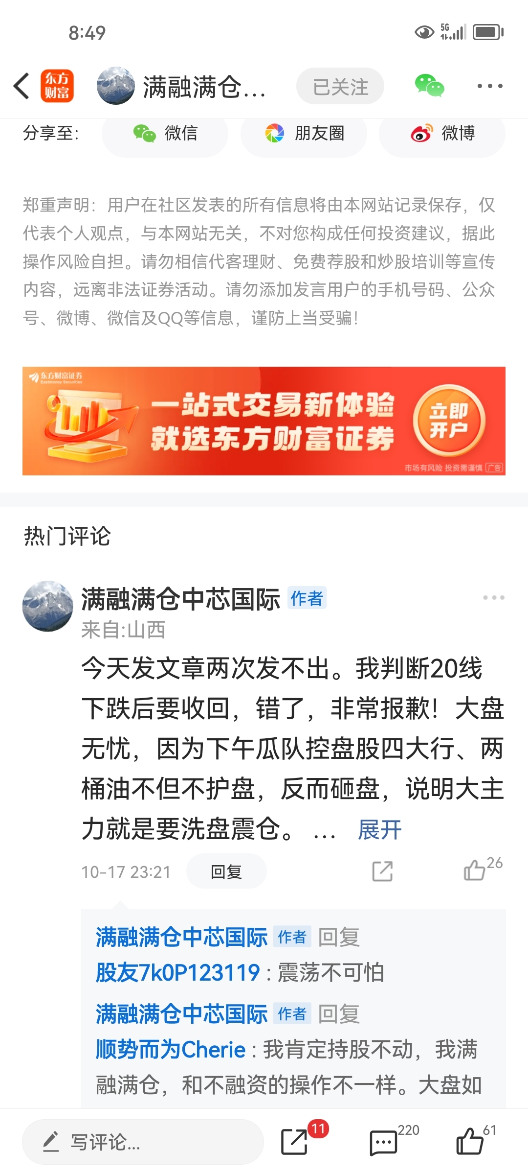 温馨提示: 1.根据《证券法》规定,禁止编造、传播虚假信息或者误导性信息,扰乱证券市场;2.用户在本社区发表的所有资料、言论等仅代表个人观点,与本网站立场无关,不对您构成任何投资建议。用户应基于自己的独立判断,自行决定证券投资并承担相应风险。《东方财富社区管理规定》