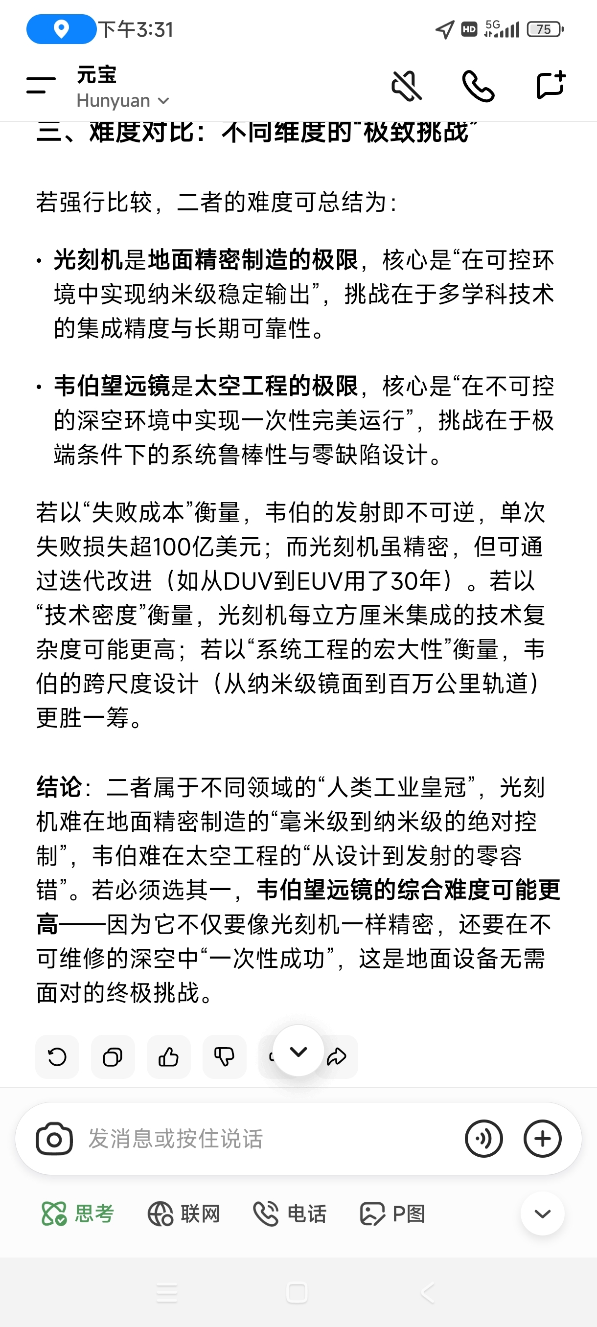 我一直在想,是光刻机制造难度大还是韦伯太空望远镜制造难度大,大家可以说说你们的看
