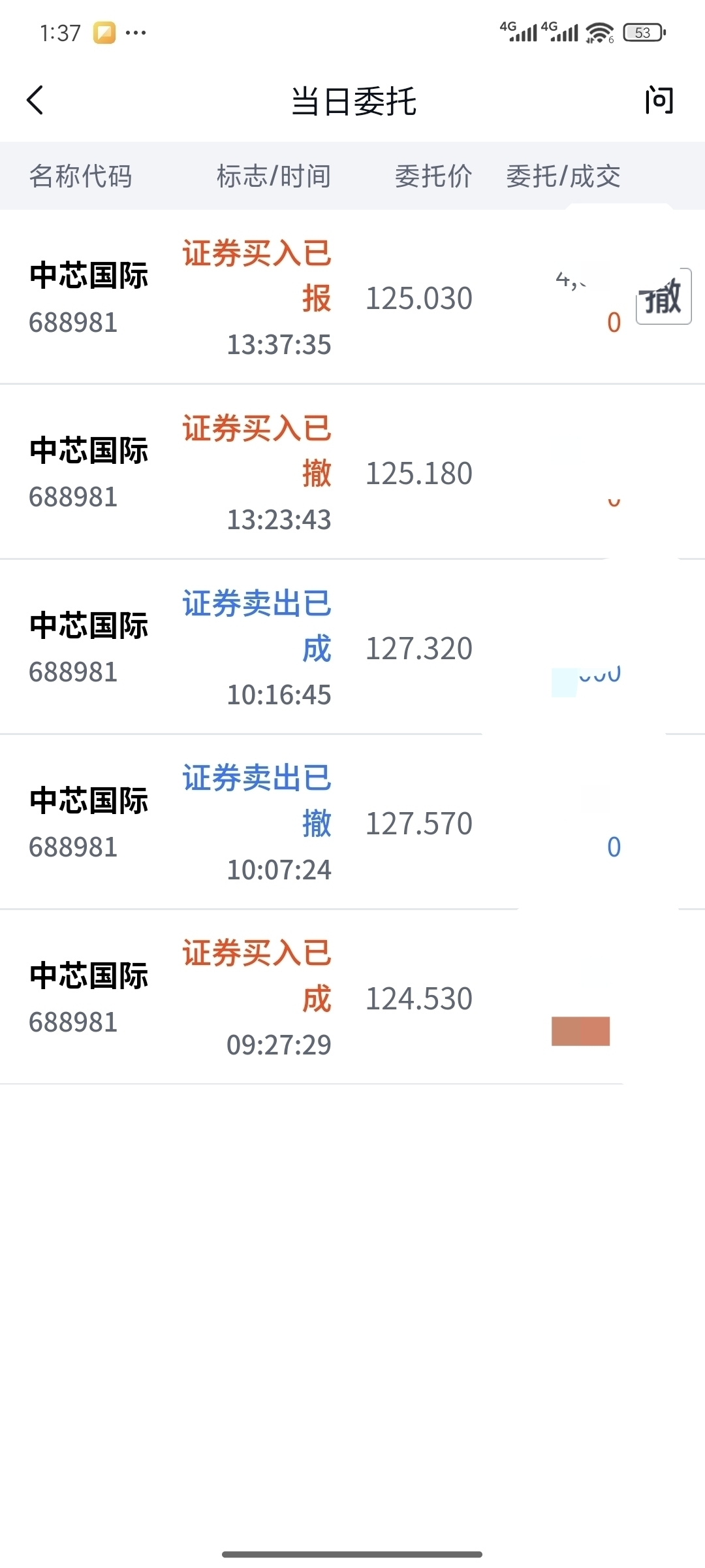 如果大盘再砸一下,中芯还能够到125附近的话,仓位轻的友友们,还可以买进。我早上做差价出来的资金篮子又挂好了。