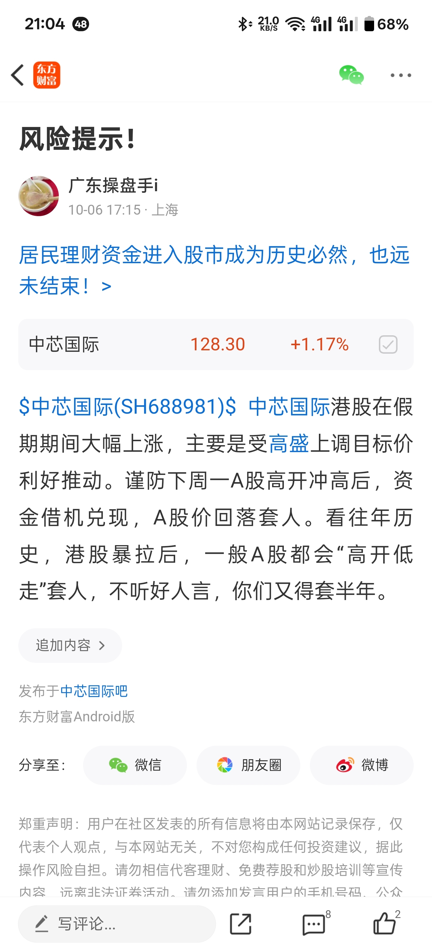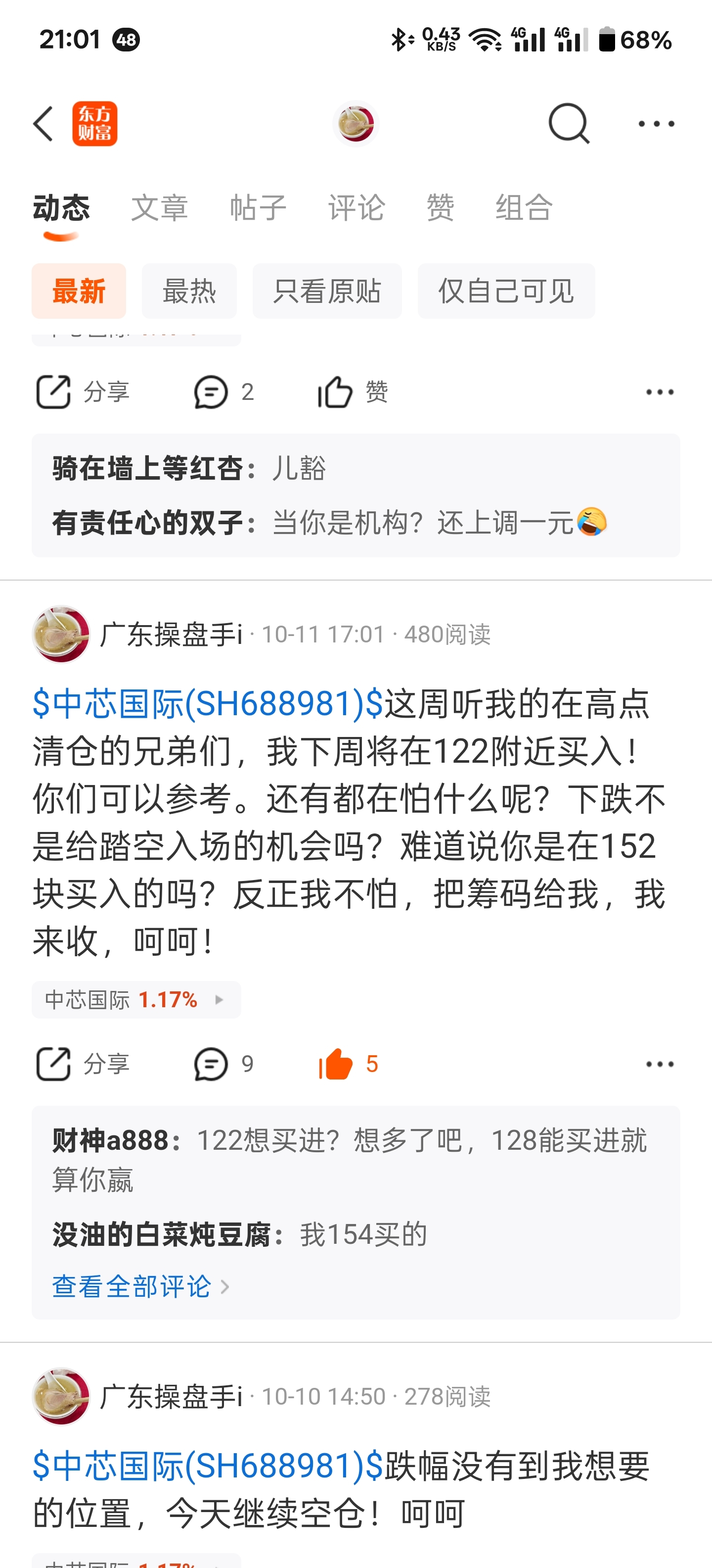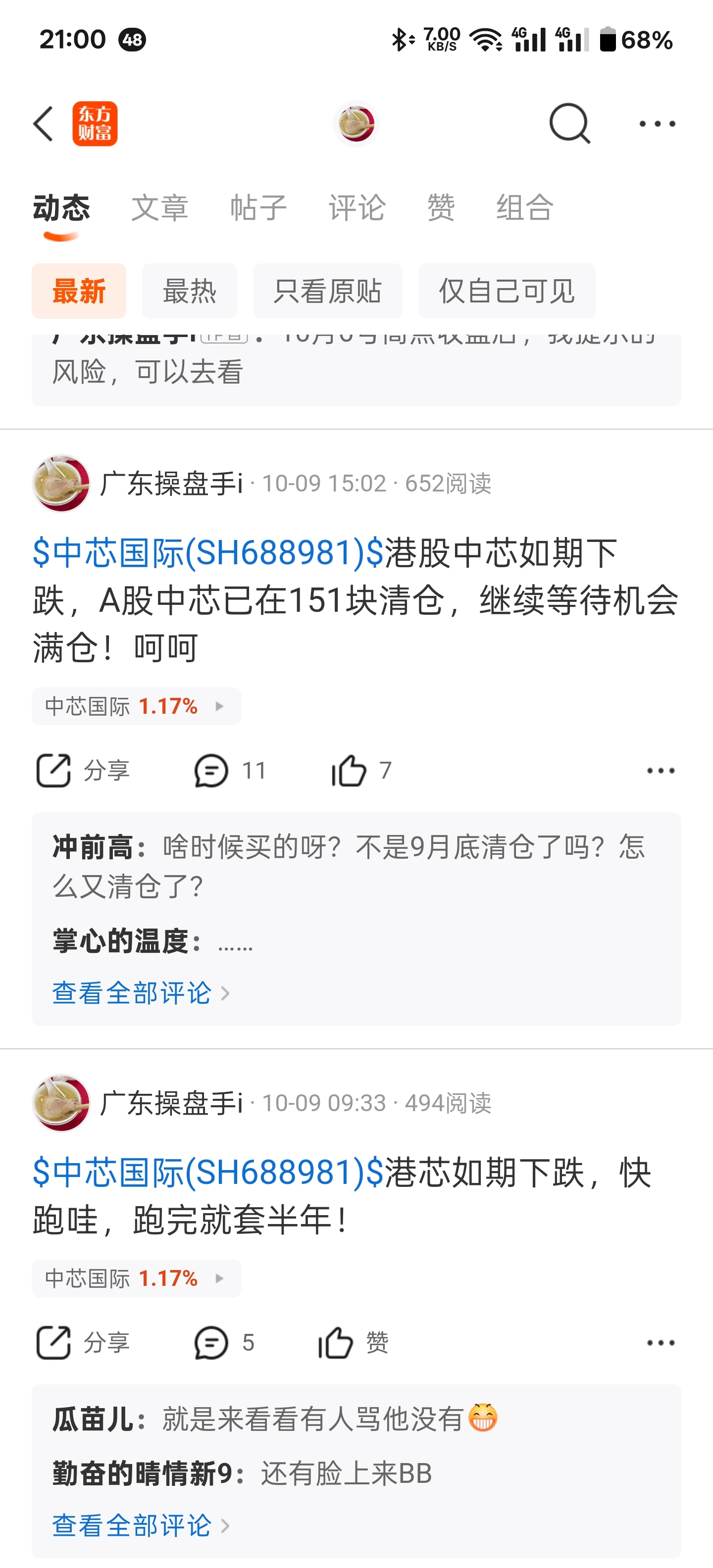 $中芯国际(SH688981)$ 注意了,国庆前让你们冲高清仓的是我,让你们123附近进场也是我,不是那个反复横跳的某某操盘手。你们可以看看我的记录!