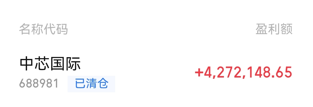 $中芯国际(SH688981)$ 去年国庆后追的,多次加仓,平均成本90块建仓10万股。今年9月份开始逐步减仓,最高卖出点146.4元,上周五清掉了最后的3万股。