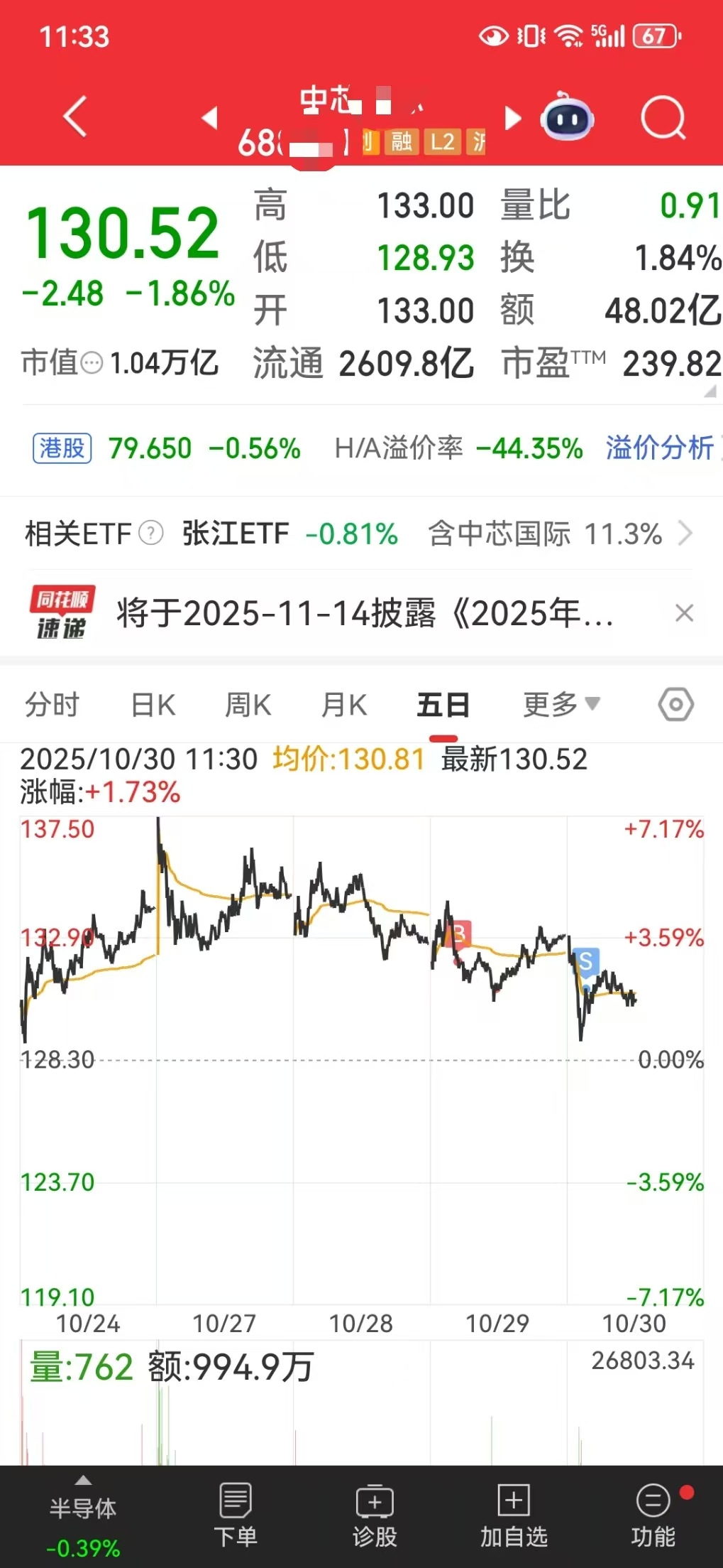 $中芯国际(SH688981)$ 走了,亏了顿饭钱,浪费行情,留下来的继续吃肉!