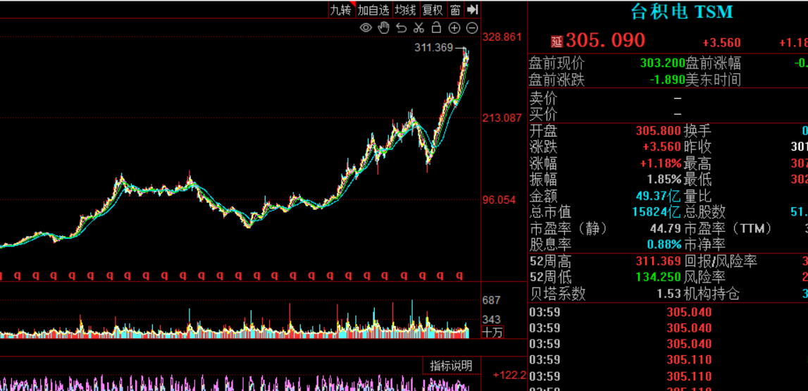 台积电(TSMC)市值约为9.1万亿人民币左右。