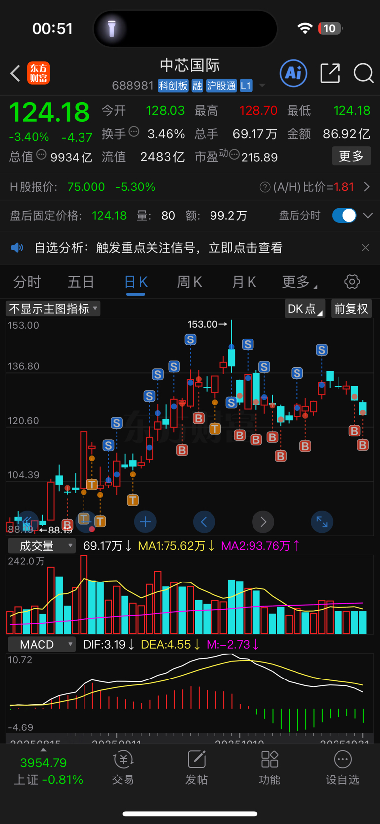 $中芯国际(SH688981)$ 都T出花了,以后懒得T