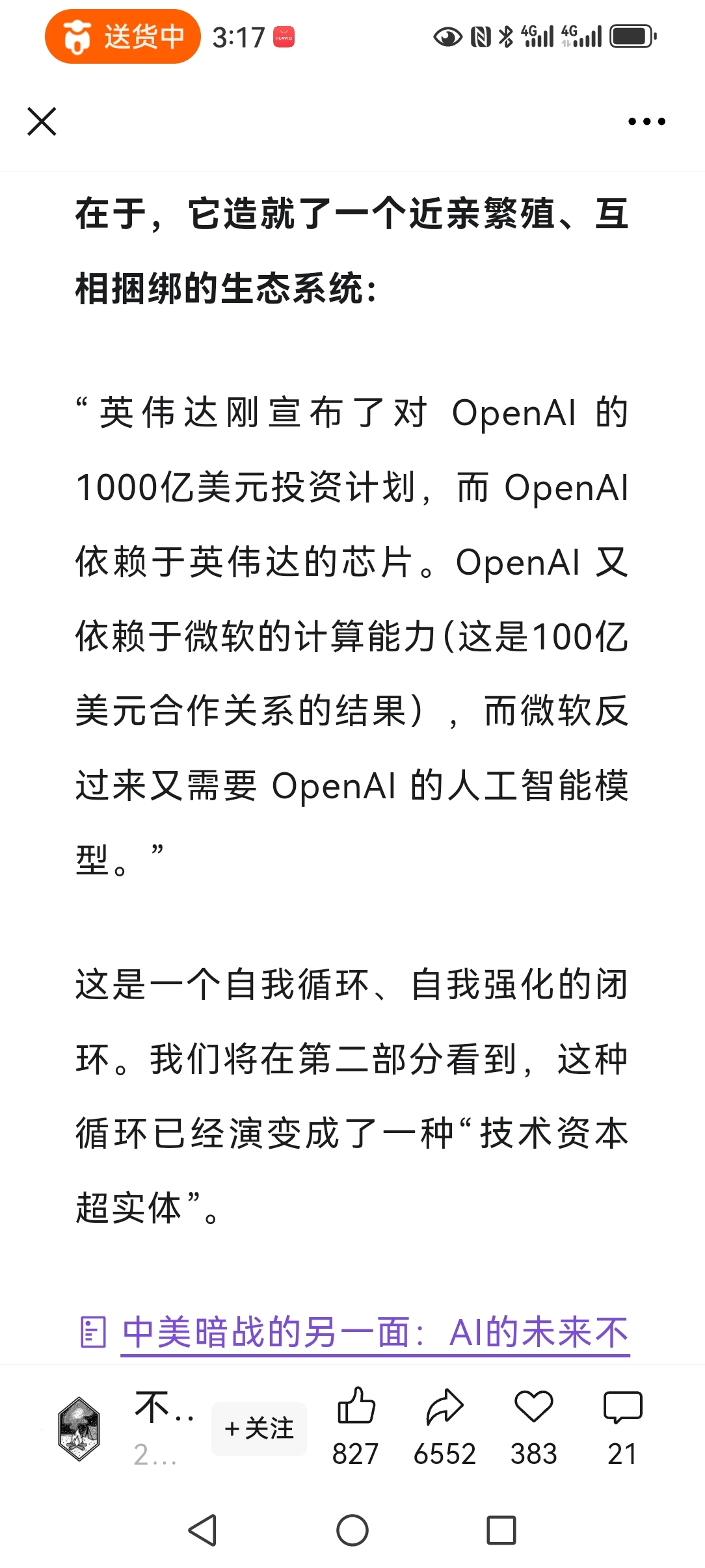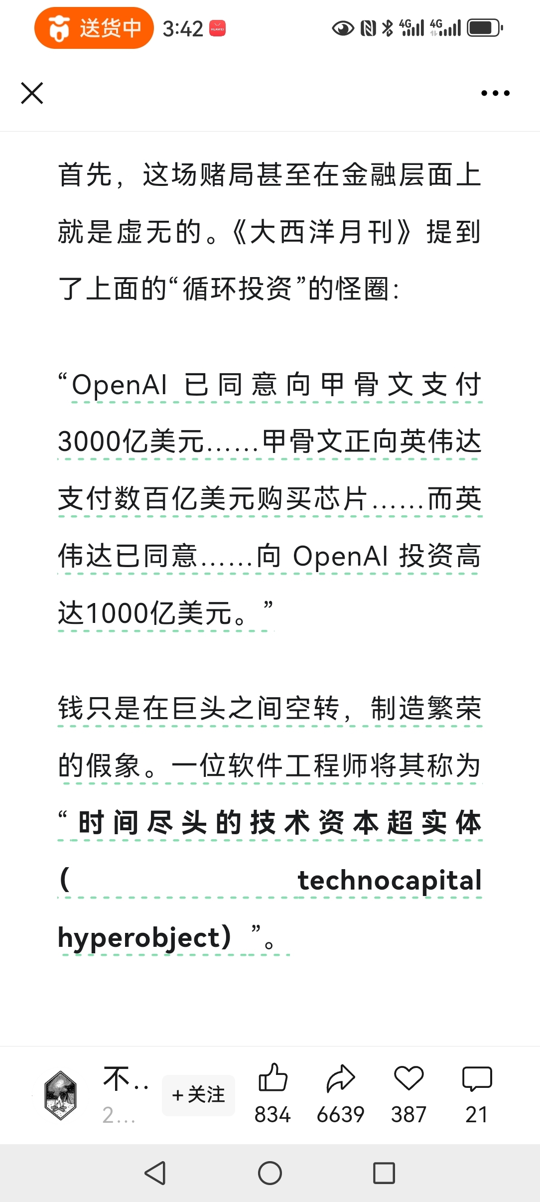 认真看完了,文章写得太好了。最近看了老黄的最新演讲,脑中的几个问题就是:他为啥一直在减持?AI越来越先进,未来人类咋办?几大巨头互相投资,互抬股价
