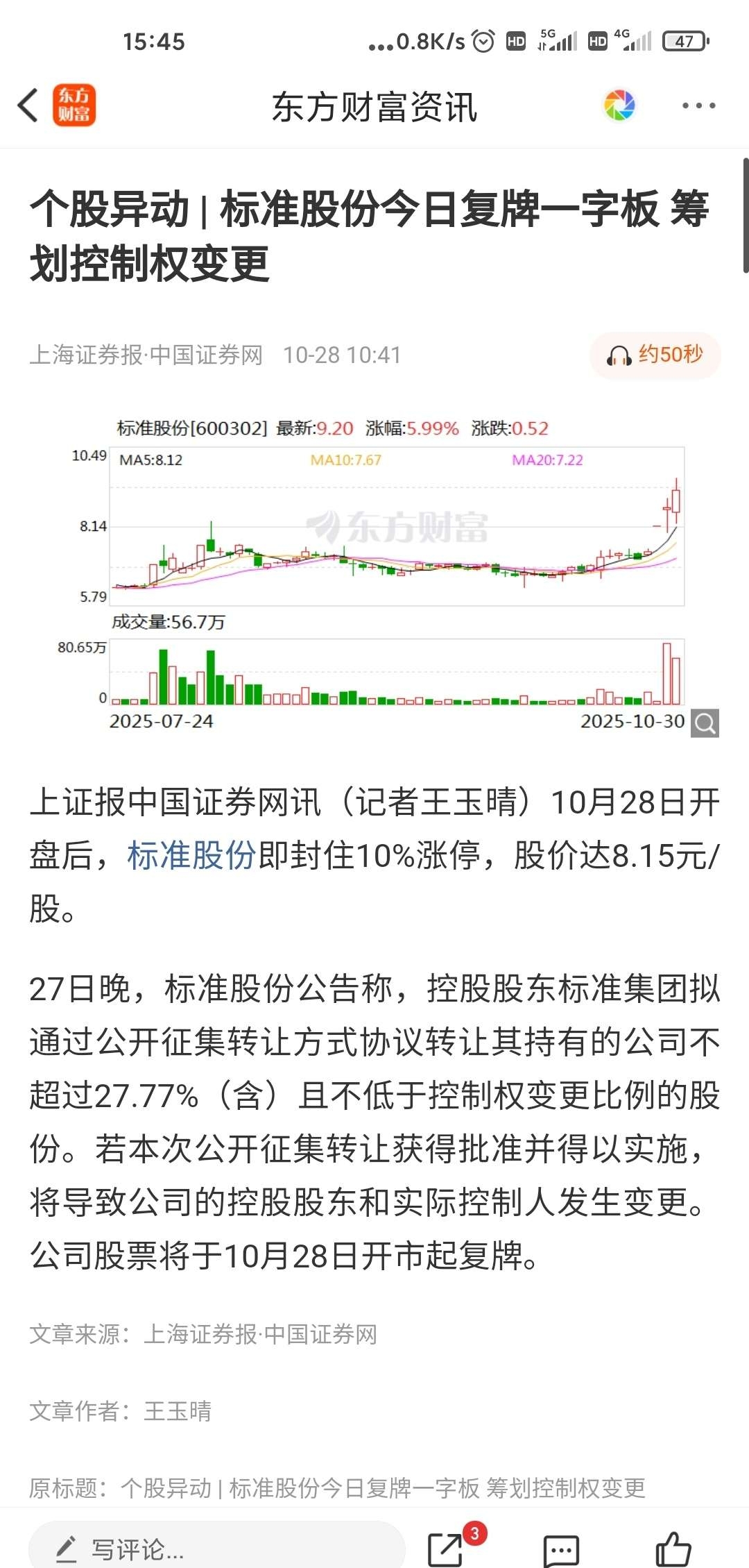 标准股份,已经公告:马上就要重组!最明确的重组股,盘小,,翻五倍$寒武纪-U(SH688256)$ $澜起科技(SH688008)$