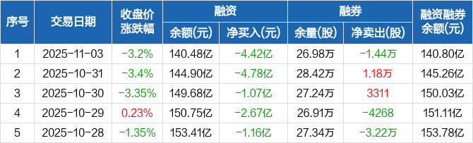 中芯国际:融资净偿还4.42亿元,两市排名第二(11-03)