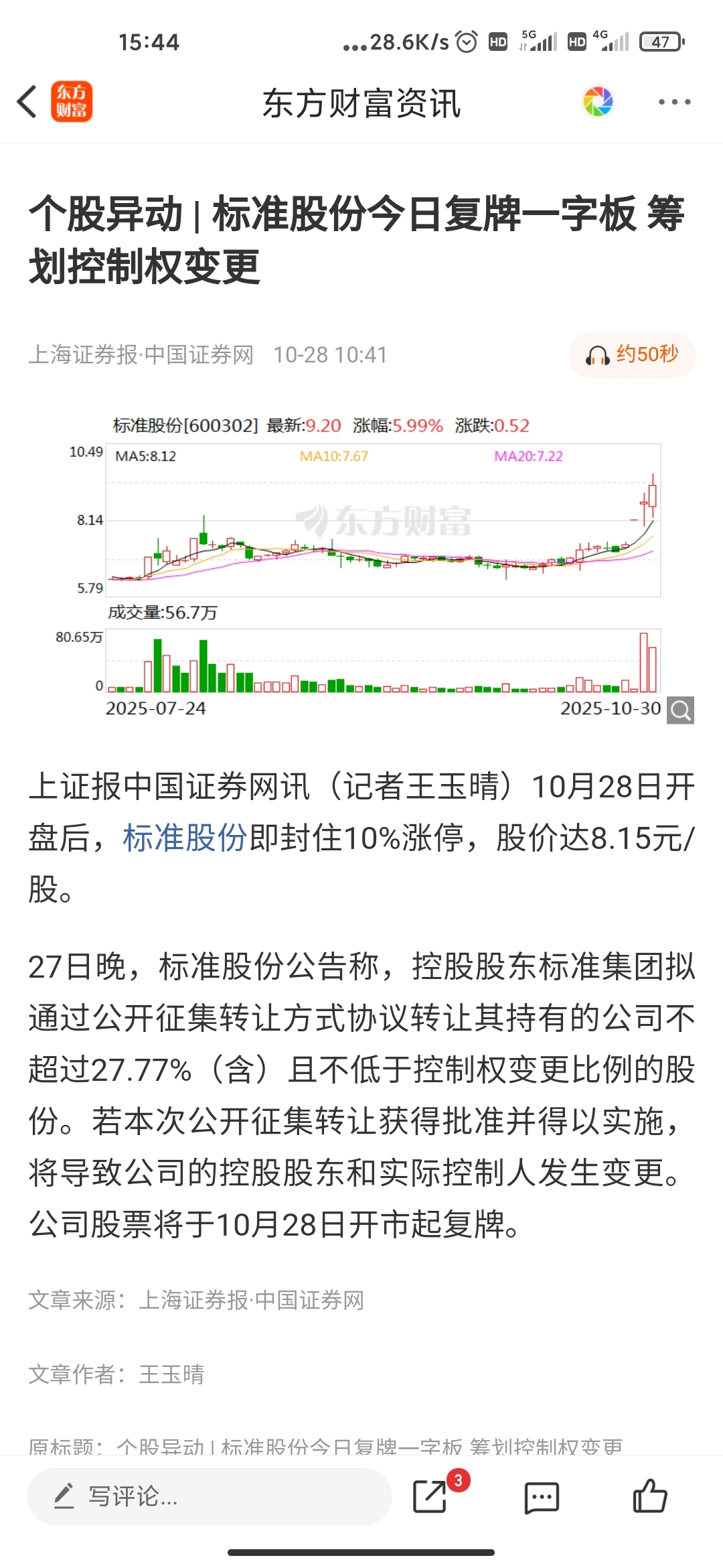 标准股份,已经公告:马上就要重组咯,史上最明确的重组股,盘小质优,起码要翻五倍!回调就是买入的最好机会风浪越大,鱼越贵$寒武纪-U(SH688256)$ $海光信息(SH688041)$