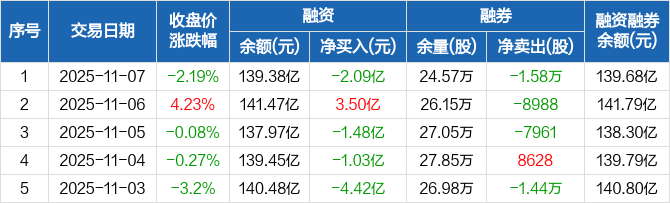 中芯国际:融资净偿还2.09亿元,融资余额139.38亿元(11-07)