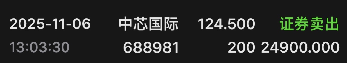 $中芯国际(SH688981)$ 所以说,下跌趋势建立的时候,什么格局预测都没有用,就是得自己熬,熬到止跌回升。双十一消费消费,犒劳犒劳自己,人到中年了,今年茅子这么合适,一箱才1个w,我6号就准备双十一了,大仓一股不动,1000股玩玩t,就当赌和零花钱,两箱茅子今天到货了。日子还长着呢,人总归要老去,中芯日子还长着呢,对自己好点。