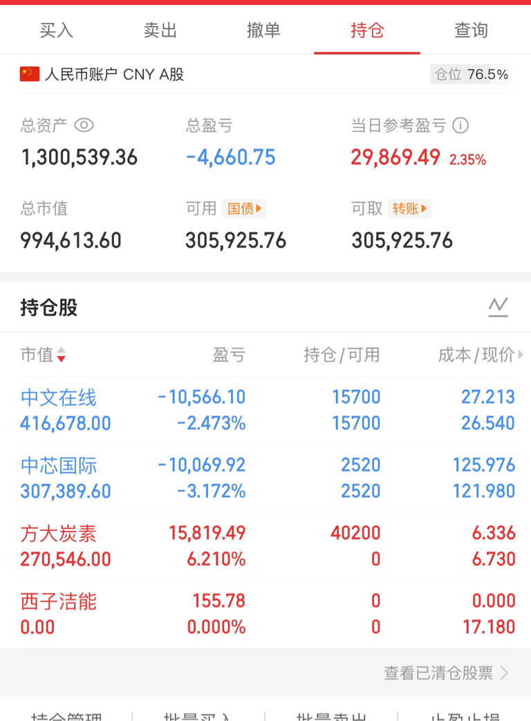 11.13调仓清:西子洁能锁:中芯国际、中文在线开:方大碳素