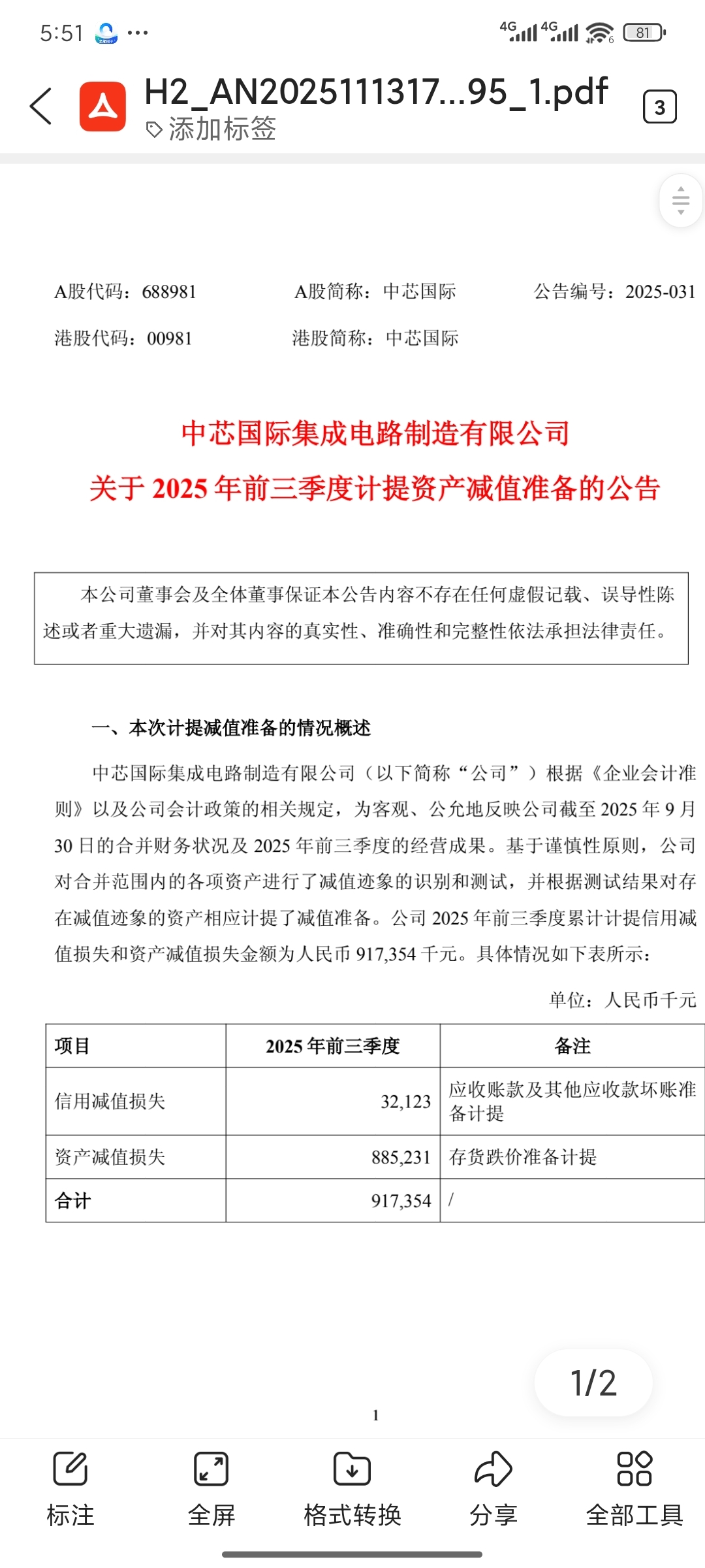 竟然还有人说明天要大涨,这个智商,还炒股票!真的是无语了!这个明明是大利空!任何股票,只要报表出来有计提减值的,必跌无疑!