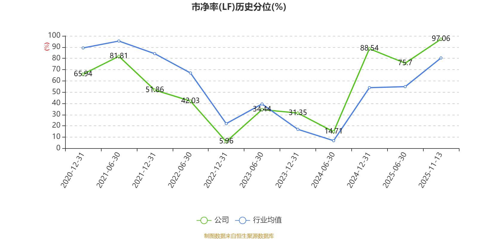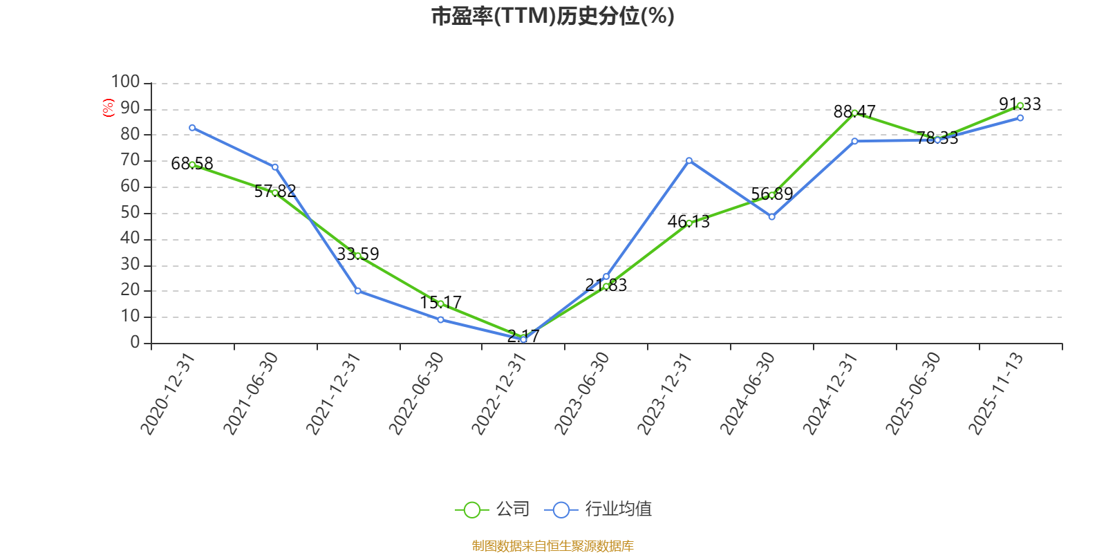 市盈率、市净率为负时,不显示当期分位数,会导致折线图中断。