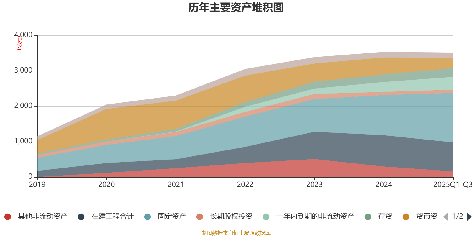 资产重大变化方面,截至2025年三季度末,公司固定资产较上年末增加23.39%,占公司总资产比重上升7.75个百分点;货币资金较上年末减少40.95%,占公司总资产比重下降5.52个百分点;其他非流动资产较上年末减少46.74%,占公司总资产比重下降3.89个百分点;一年内到期的非流动资产较上年末增加29.47%,占公司总资产比重上升2.39个百分点。