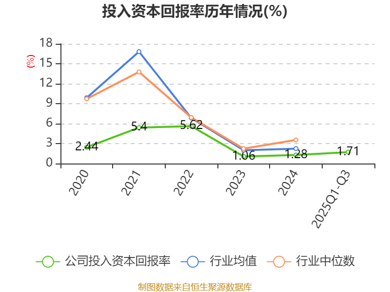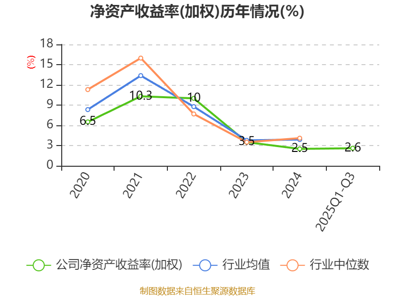盈利能力方面, 2025年前三季度公司加权平均净资产收益率为2.6%,同比上升0.7个百分点。公司2025年前三季度投入资本回报率为1.71%,较上年同期上升1.08个百分点。