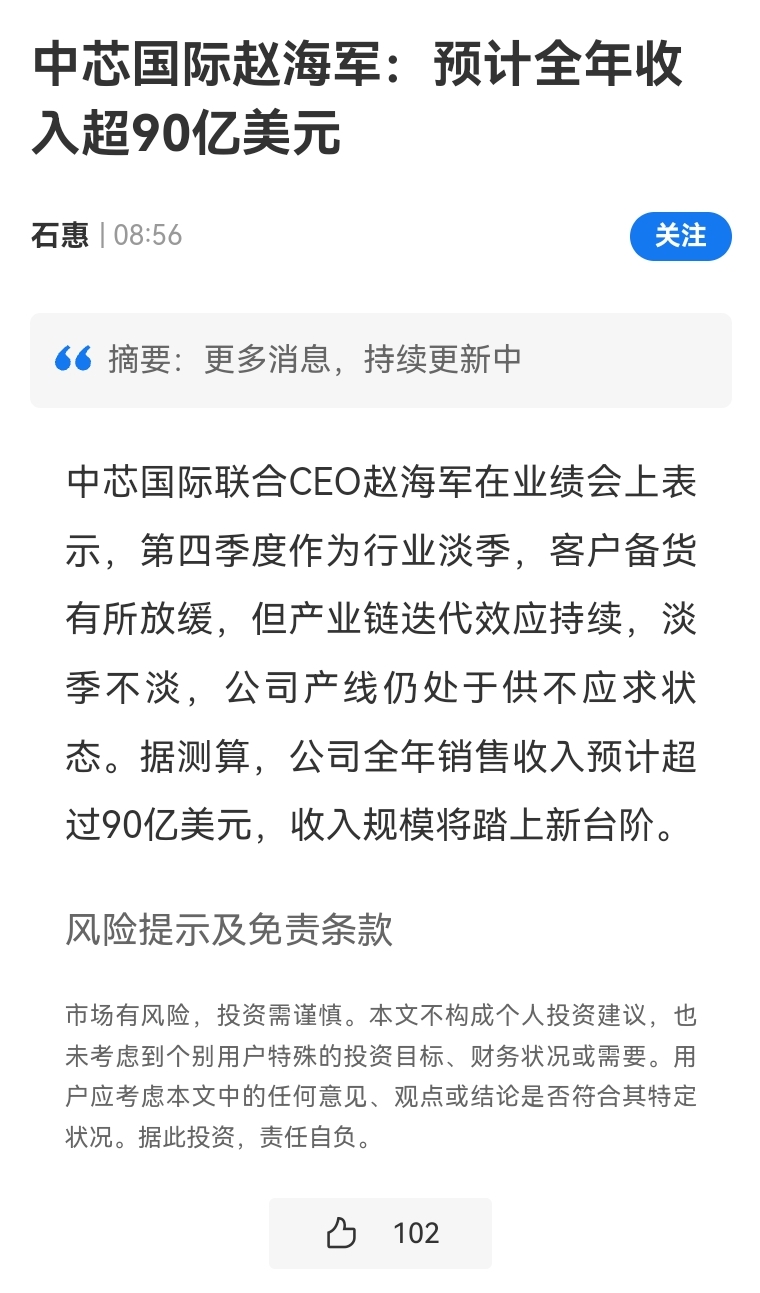 $中芯国际(SH688981)$ 兄弟们,别吹了,再吹跌给你看。