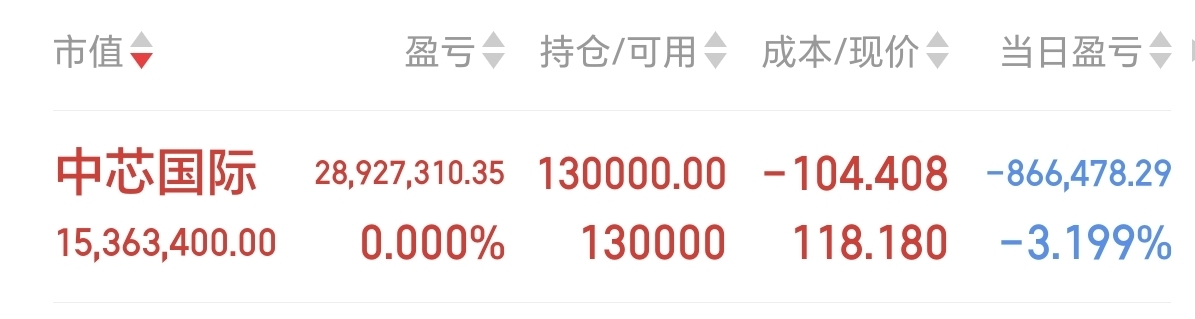 $中芯国际(SH688981)$ 留点仓位,过段时间再考虑是否加,就这样吧,爱跌跌去