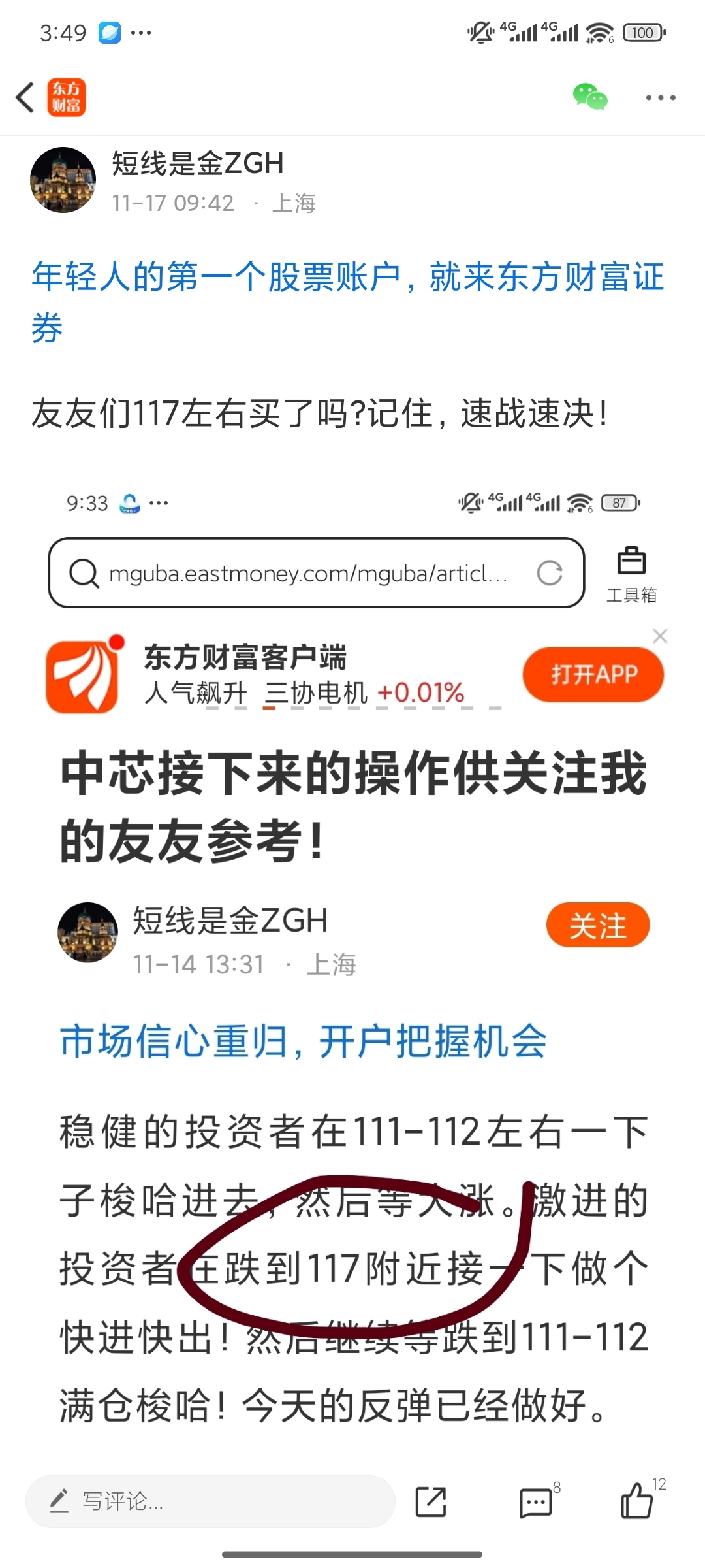 友友们117附近的反弹应该做好了吧!多次说了,速战速决。接下来又要去考验上次的低点115.74,如果暂时撑住,还有一个反弹。撑不住,继续奔下一个低点112。到时候看反弹的力度。再说一句,某神棍误导的年底180,想都不要去想,要么梦里有!很有可能180没有到,108却差不多要到了!