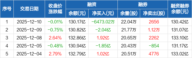 中芯国际:融资净偿还6473.02万元,融资余额130.17亿元(12-10)