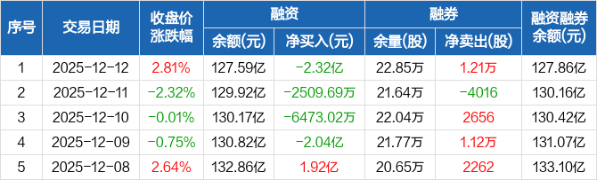 中芯国际:连续4日融资净偿还累计5.27亿元(12-12)