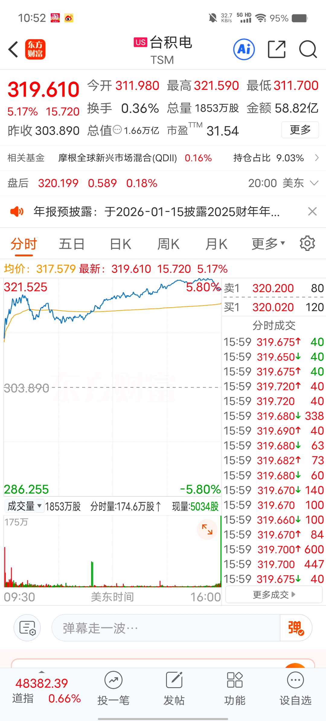 $中芯国际(SH688981)$ 台积电昨晚破新高了