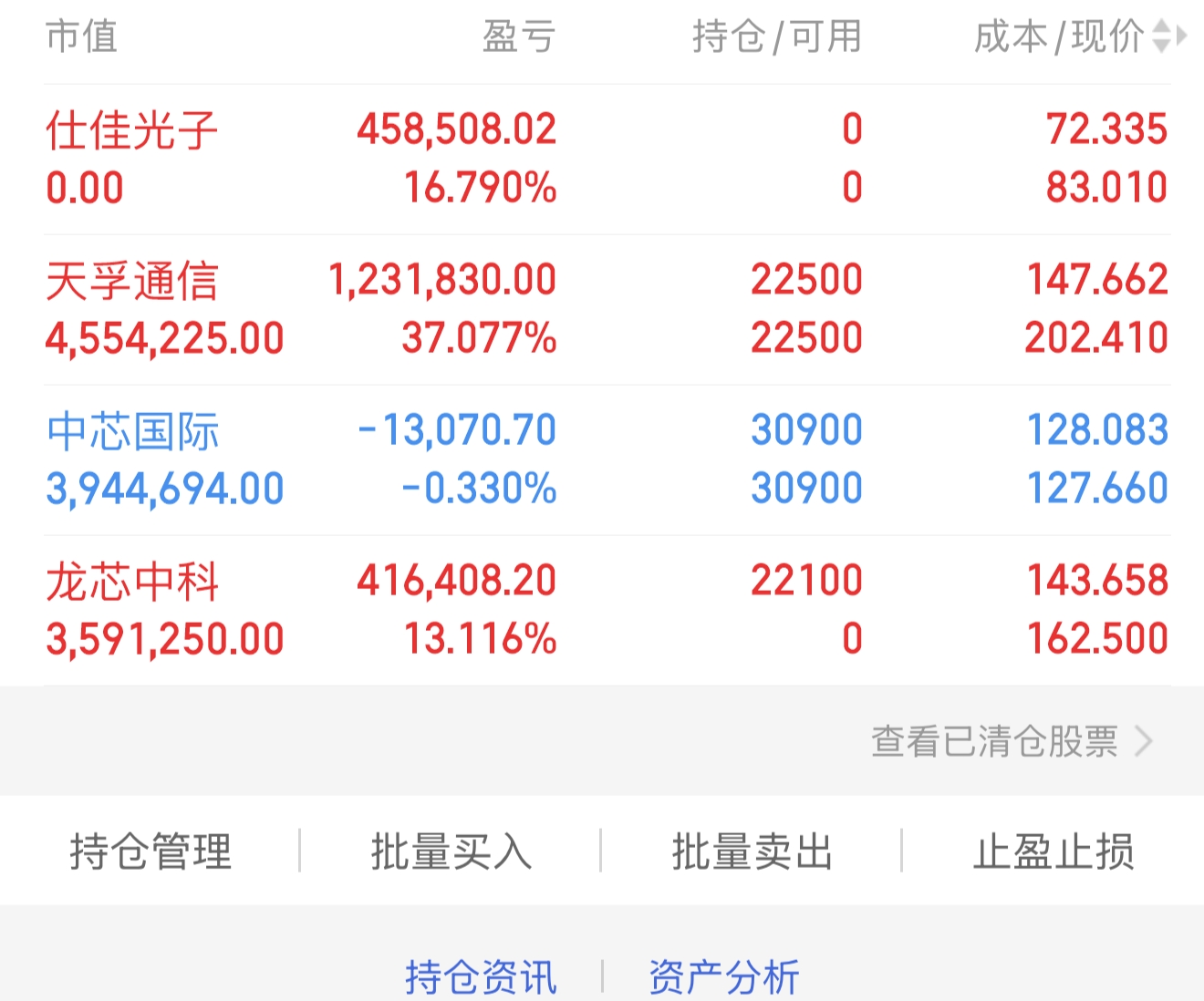 $龙芯中科(SH688047)$ $仕佳光子(SH688313)$ #炒股日记# #实盘记录# #指数投资讨论圈#