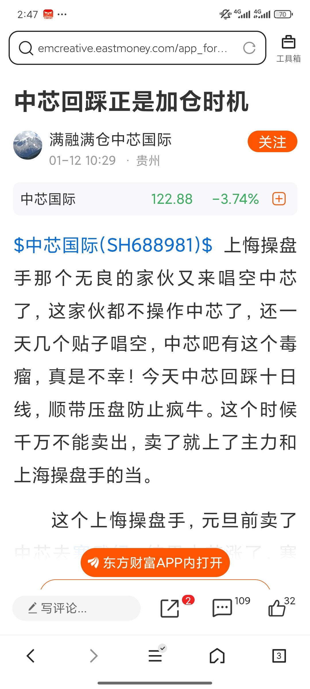 满仓满融今天又唱多中芯了,所以中芯今天肯定会大跌,呵呵。典型的反向指标!这是回踩十日线?