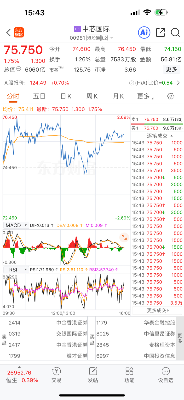 $中芯国际(SH688981)$ 最近港股中芯强,跌的少涨的多