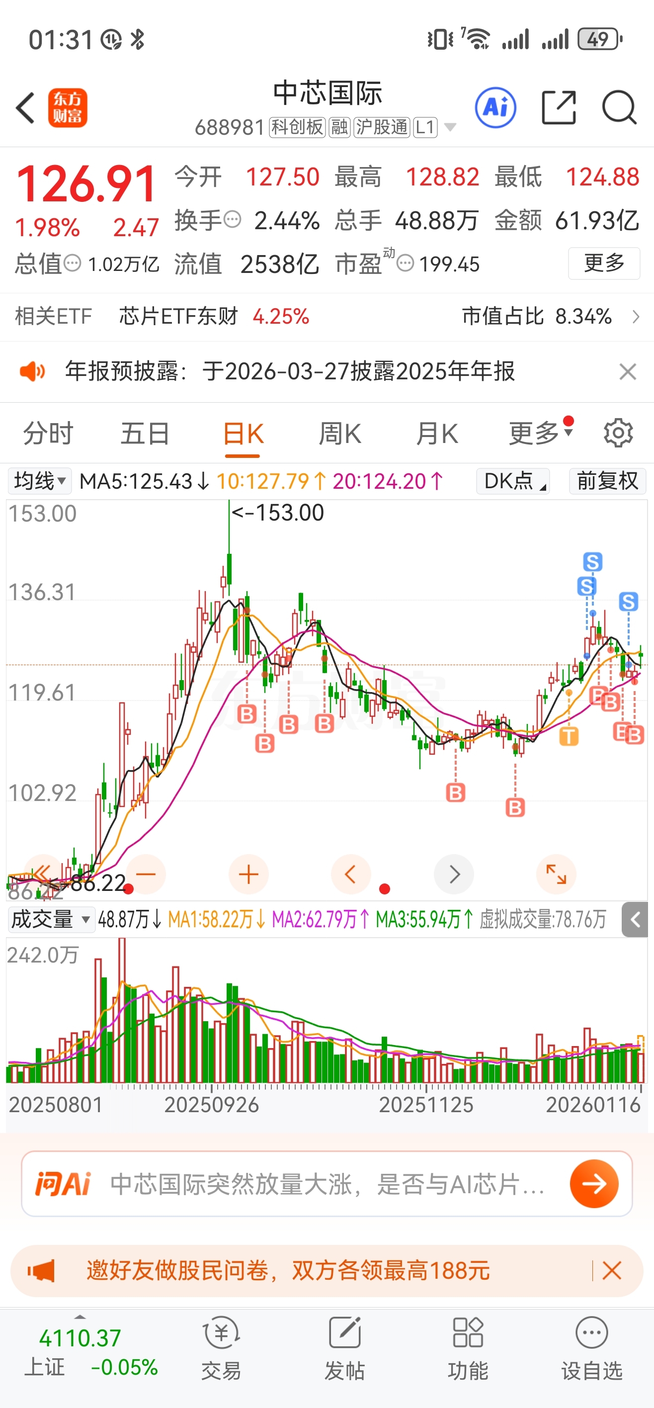$中芯国际(SH688981)$ 这个票只能T,苦苦坚是没用的